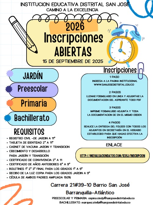 CR 21 39 – 10 Barranquilla – Colombia Copyright © Todos los Derechos reservados www.sanjosedistrital.edu.co